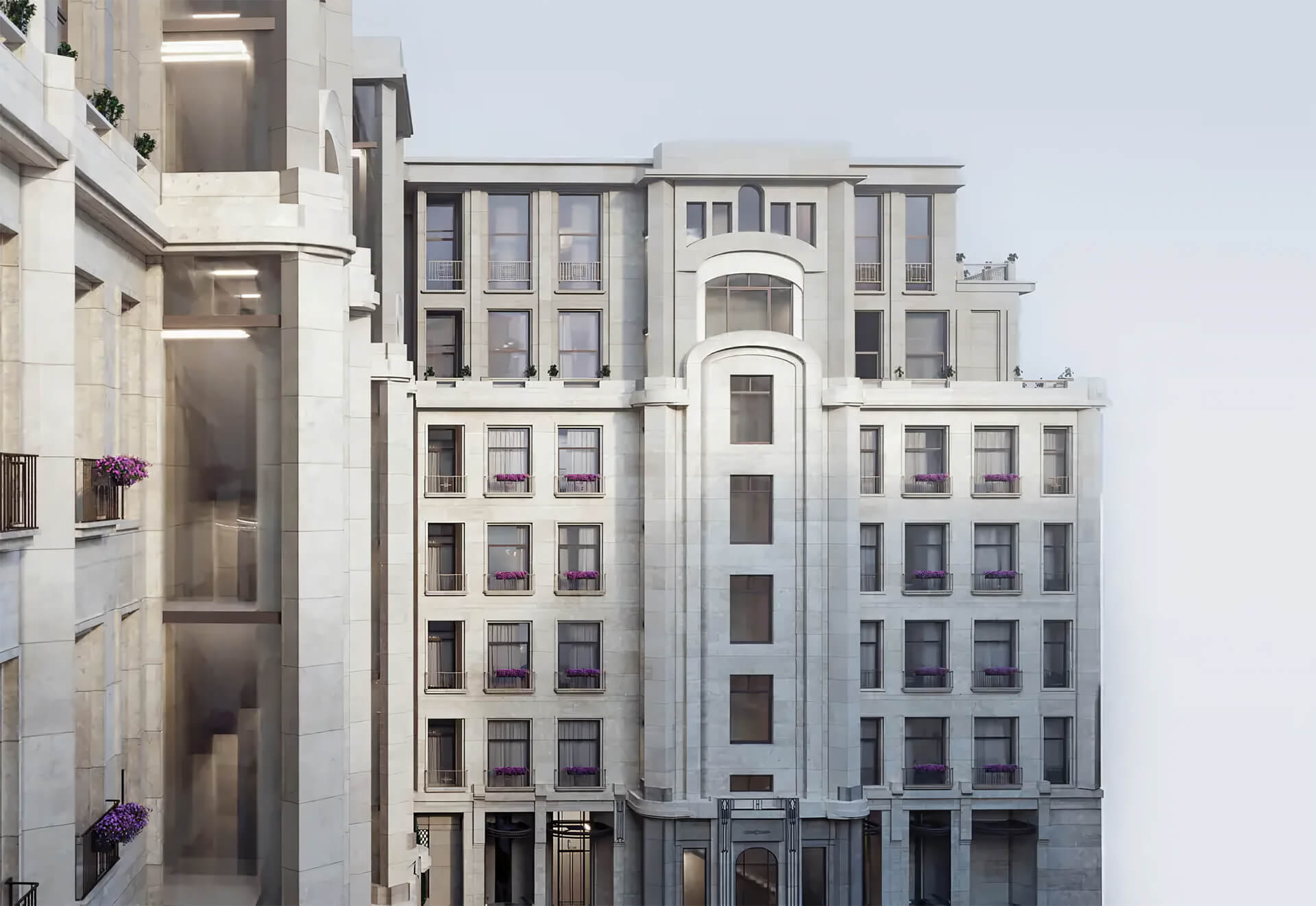 HOUSE FALCONNIER — современная интерпретация стиля модерн. Здесь используются стеклянные элементы, вдохновлённые работами Гюстава Фальконье. Натуральный камень и декоративные элементы подчеркивают уникальность здания, создавая пространство, наполненное светом и гармонией.
